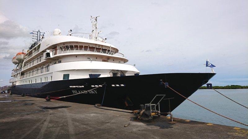 The ship 'MS Island Sky' moored at Lautoka port. At 4pm we boarded, our baggage having been delivered to our room.