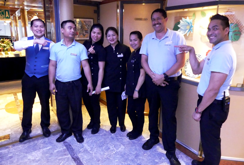 Some of the Fillipino crew members, including in the centre of the group, Jaina, my cabin attendant.