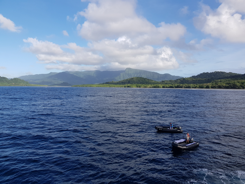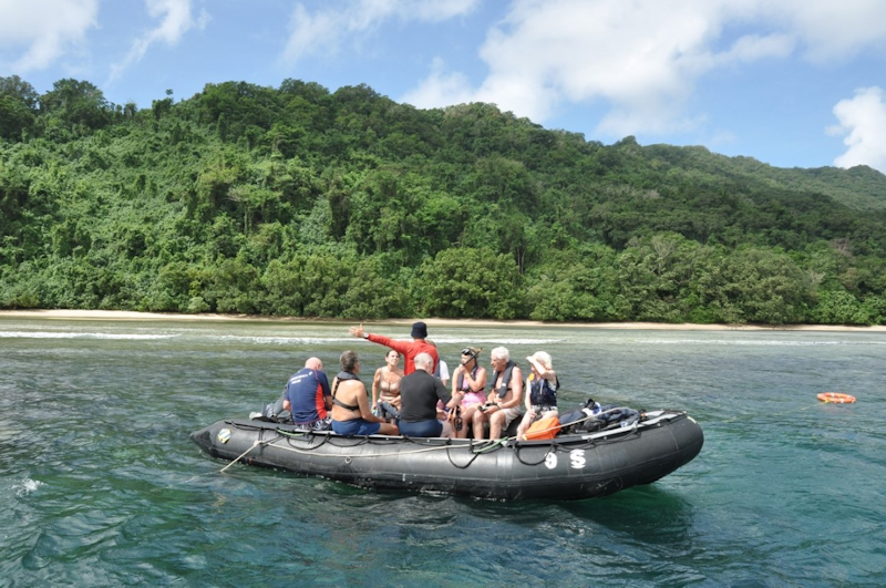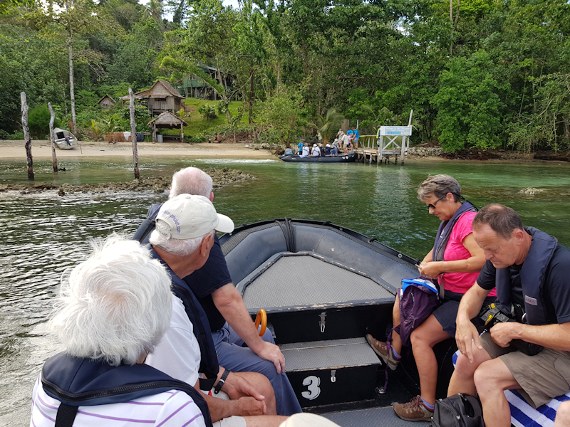The zodiacs set off for an area between Banie and Teanu islands where they will be landed to watch a dancing ceremony.