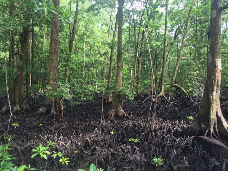 Tropical rain forest with mangrove swamps.