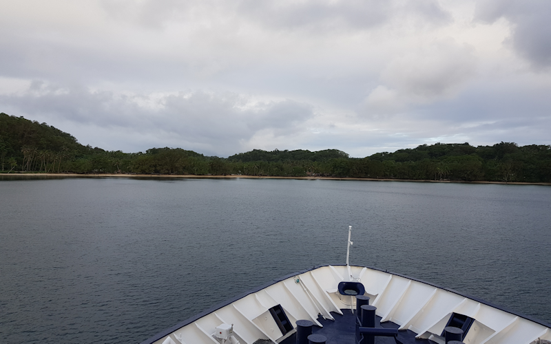 Just after 5.00 pm and with all Zodiacs hoisted back on the ship and all the passengers and crew on board, it's time to weigh anchor and set sail for the next destination, Honiara, the biggest town and capital of the Solomon Islands.