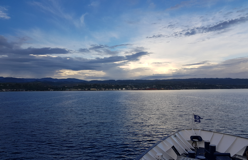 A last look at Honiara as the afternoon draws to an end and the crew prepare the ship to sail at 6pm.