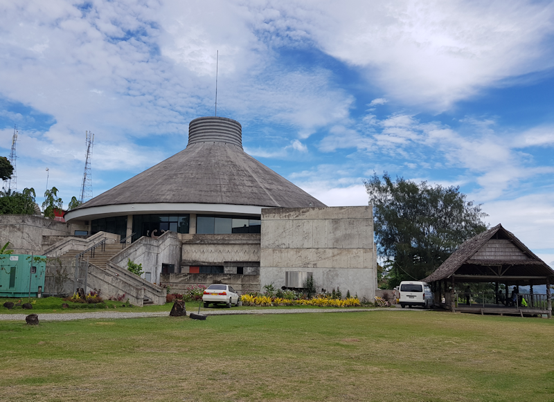The National Parliament building was funded by the United States government and completed in 1994. Ironically, the construction was undertaken by a Japanese company. We stopped at the site, pleasantly located on a hillside overlooking the centre of Honiara, but we were not able to enter the building as the parliament was in session.