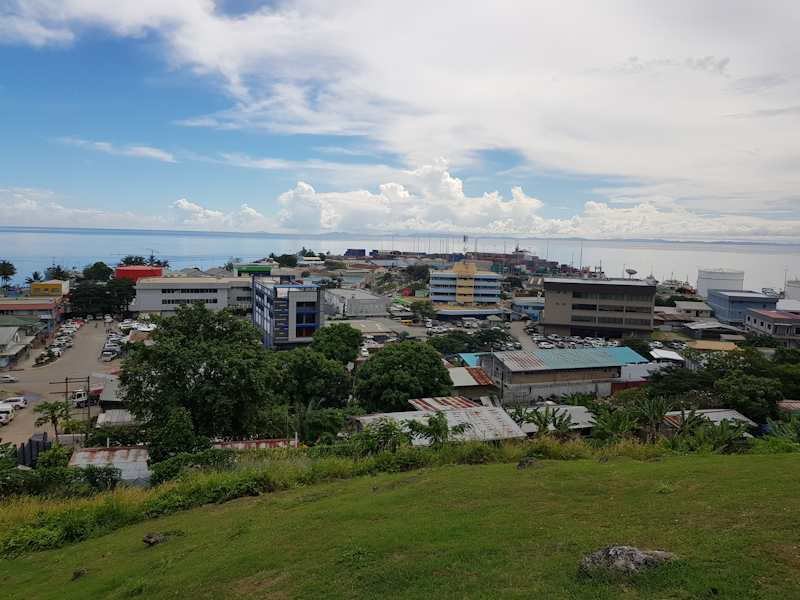 A view of Honiara town centre looking to the west of Point Cruz, with Savo Island on the horizon (about 22 miles to the north west).
