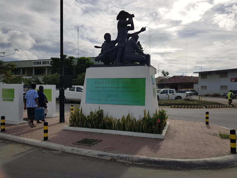 Down the avenue leading to the port is this sculpture celebrating the scouts and coastwatchers, Solomon Islanders who spied on the Japanese forces during the war and provided vital assistance to the American forces.