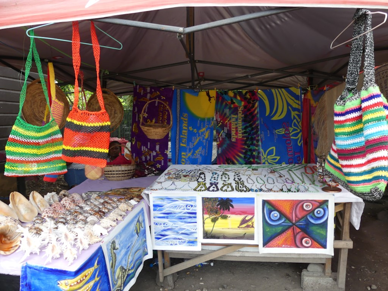 Now away from warfare and back to Honiara, where these colourful goods were on sale in the Heritage shopping centre.