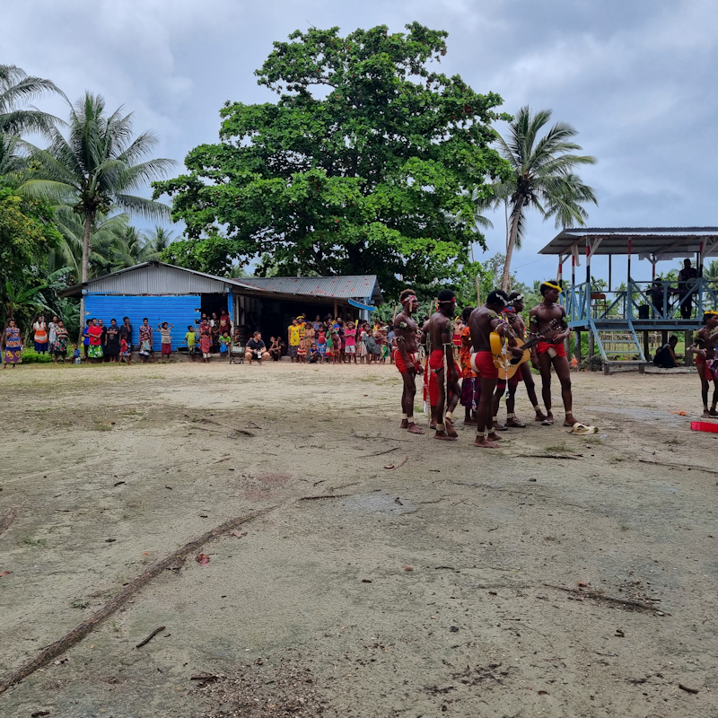 In the afternoon, I was in Group 4 doing the Zodiac cruise up the river. Afterwards we were landed on the island at a site where there were dances, food and drink and a chance to walk down the road to a village.