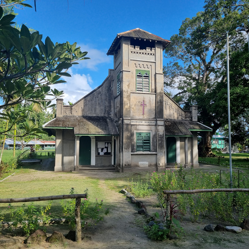 Almost seeming out of place in this island village setting was this concrete-built church on the edge of the village.