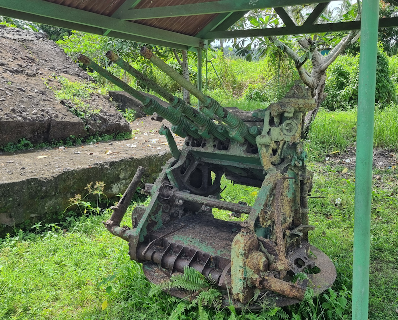 A triple machine gun turret near the Bunker. Perhaps, I wonder whether this installation was originally installed on a Japanese destroyer?