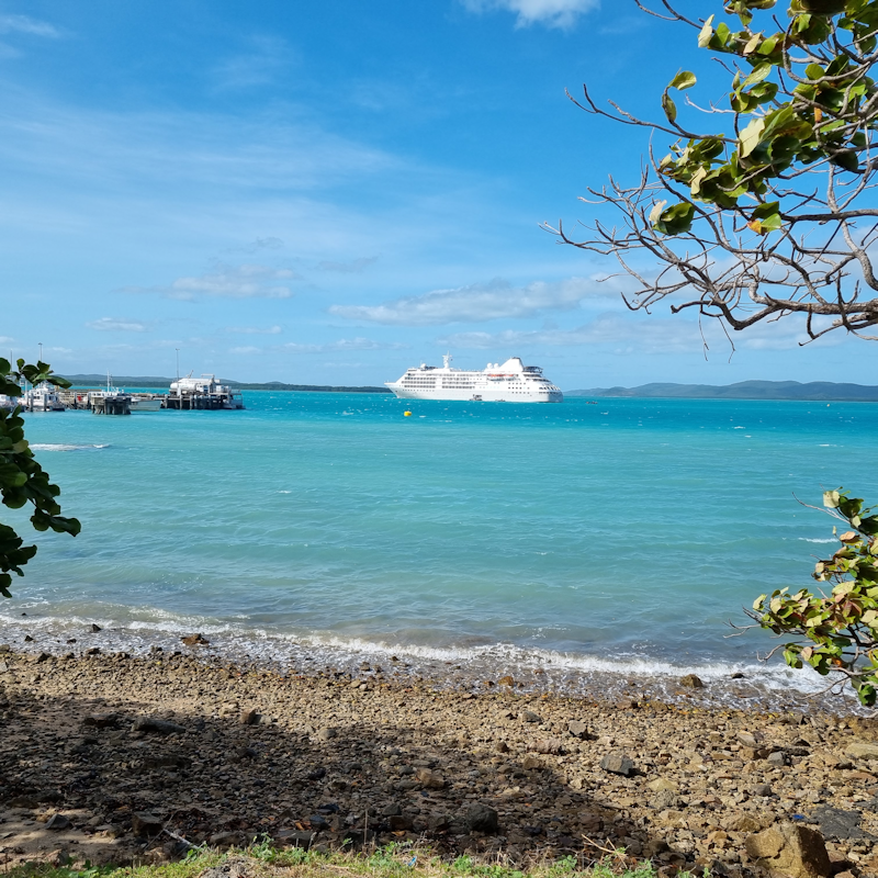 The Silver Cloud, anchored off Thursday Island, the first of our 6 visits to Australia and its northern islands. |