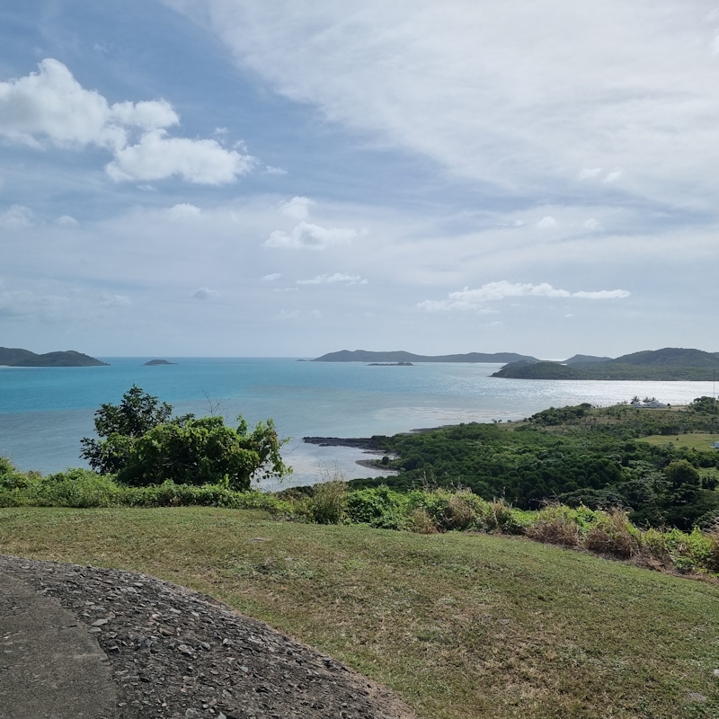 One of the elevated parts of the walk, overlooking the town with our ship in the harbour.