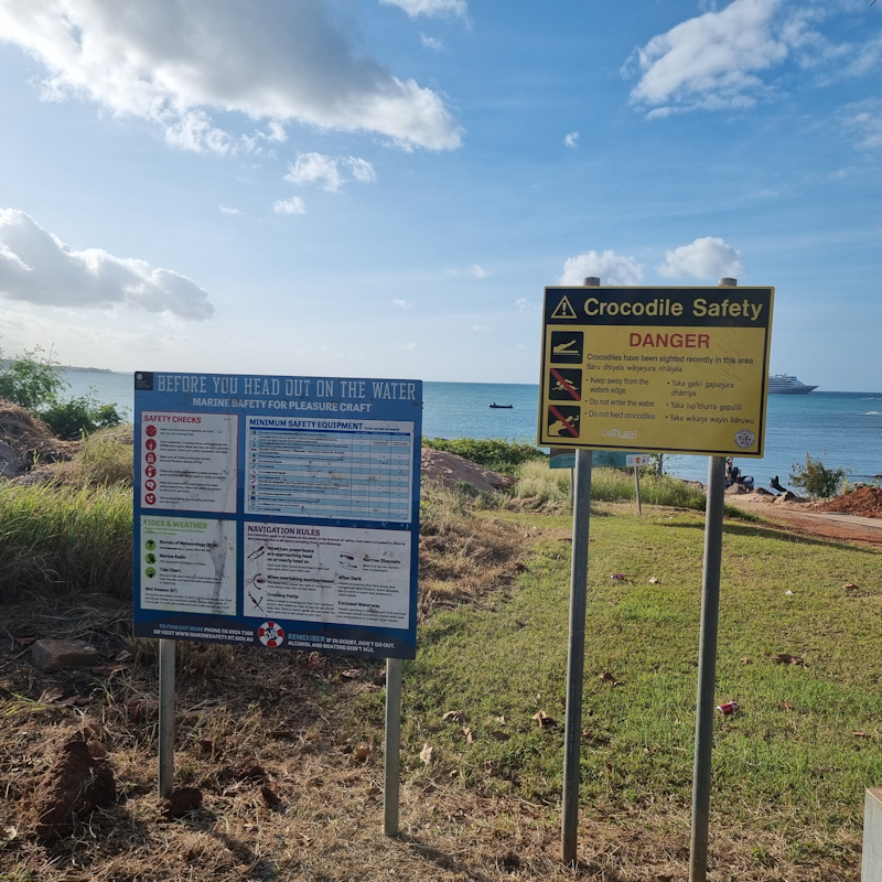 Near our landing point were these signs with rules, regulations and saltwater crocodile warnings.
