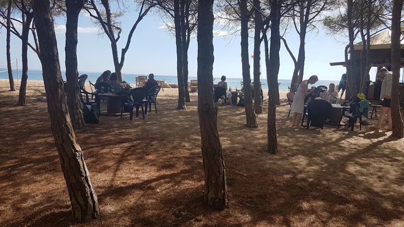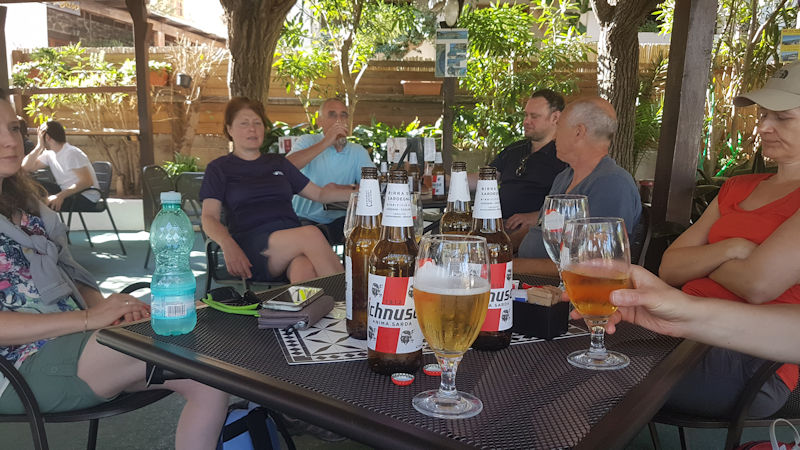 | (38) After a second swim, this one at Cala Gonone, I joined up with some of the others at the same cafe we were in on Wednesday. The local beer, Ichnusa, is very drinkable. I will look out for it back in England. | ![]() |