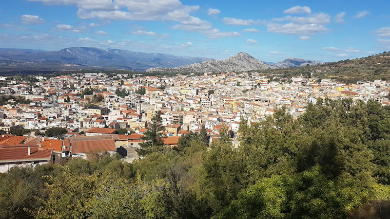| (7) Looking north over the rooftops of Dorgali where we stayed at the Hotel S'Adde. It is a small town of about 9000 inhabitants, working mainly in wine production and tourism. | ![]() |