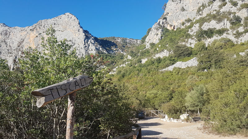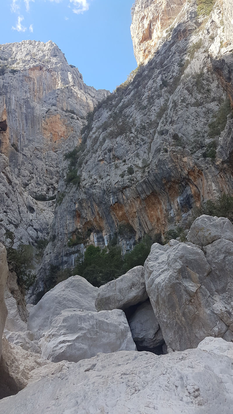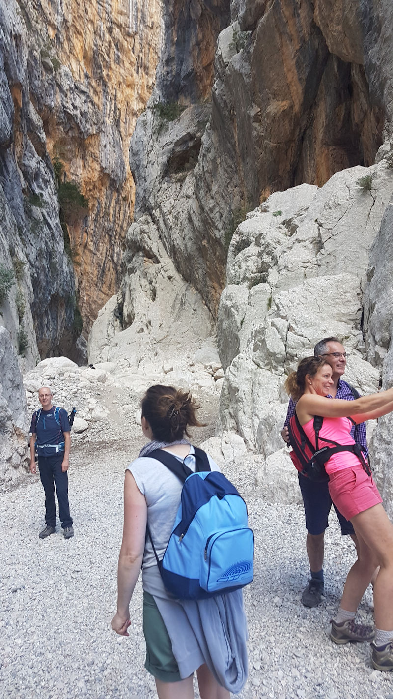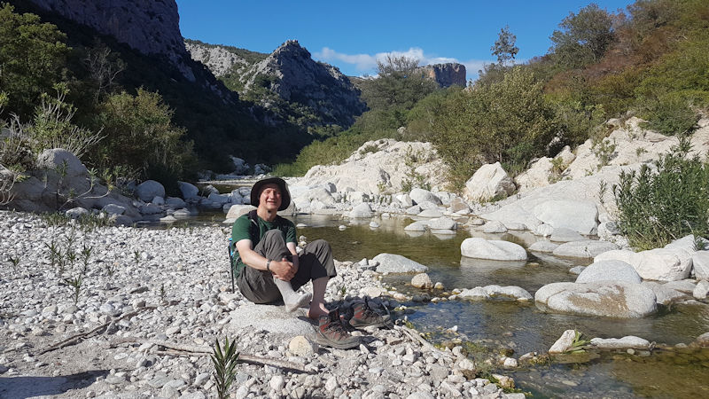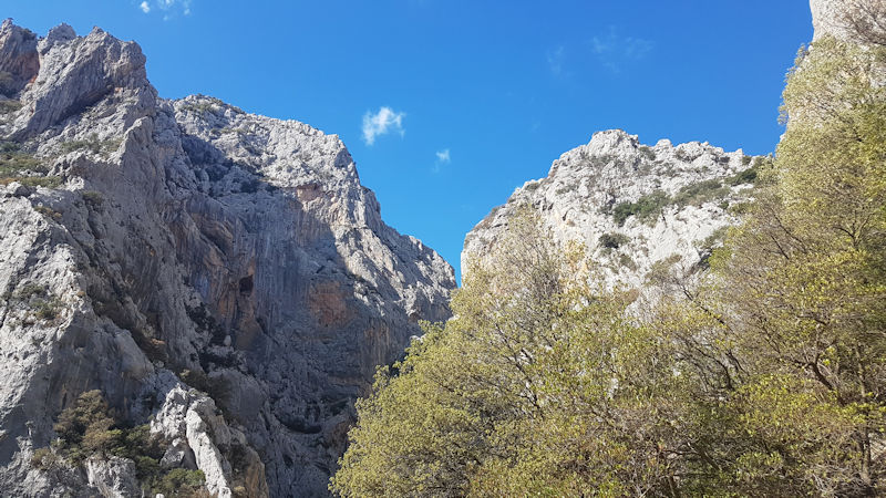 (8) Walk 2: [Gorropu Gorge] Monday's walk started at a cafe near the bridge on the Flumineddu river. After a while we approached the towering entrance to the gorge. |