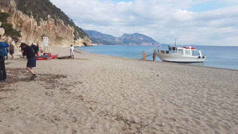 | (34) We disembark on the sandy beach at Cala Luna. | ![]() |
