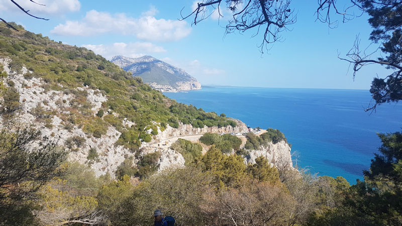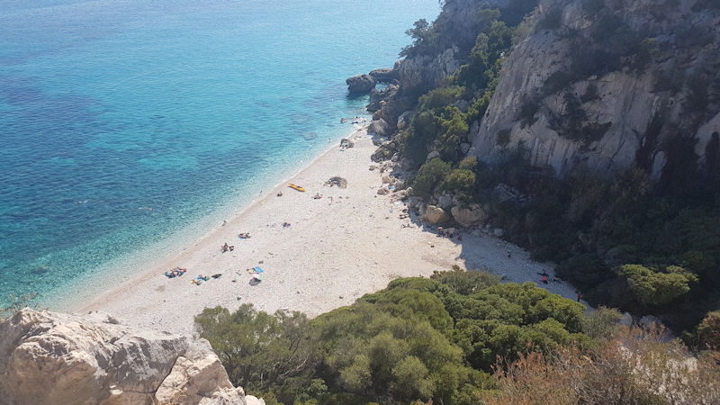 | (37) A view down on the beach as we start the last leg along the road to Cala Gonone. | ![]() |