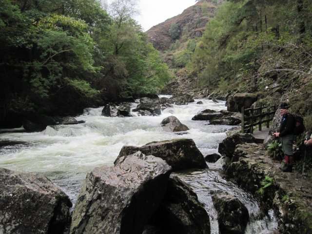 (6) Walking along the side of the Afon Glaslyn in spate after heavy rain. A really enjoyable river walk heading north back to Beddgelert.