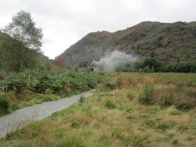 (8) As we get close to Gelert's Grave we see our first glimpse of a Welsh Highland Railway train heading north.