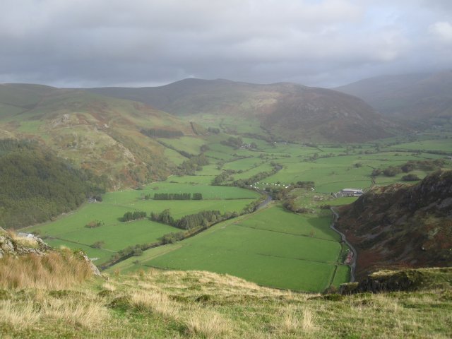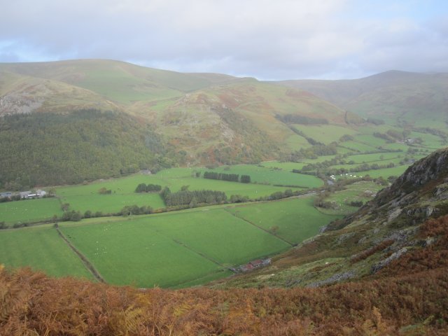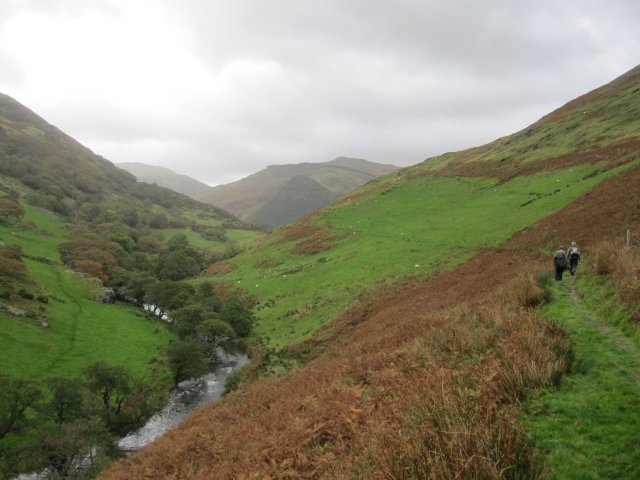 | (2) Heading towards Birds Rock (where cormorants nest a few miles inland) above the Afon Dysynni in its flat valley. | ![]() |