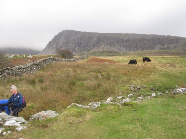 | (22) After the fourth peak (Gau Graig) we stop for lunch before our long and complex descent to Dolgellau, via a few wrong turns. | ![]() |