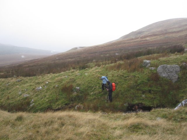 (23) Day 6 saw a very grim, grey, wet and windy trek along the Aran ridge. This ridge has 3 Nuttalls: Aran Fawddwy, Erw y Ddafad Ddu, and Aran Benlynn. This was a wet trek rather than a warm treat!. |